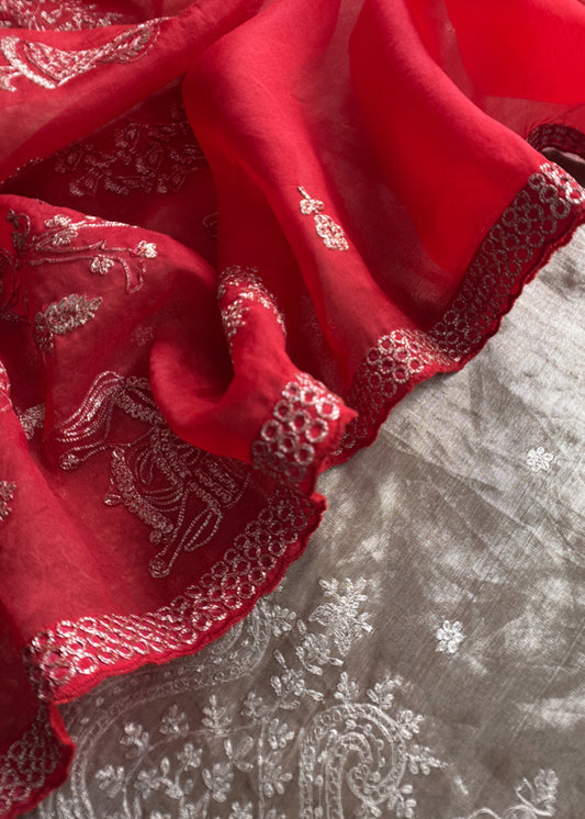 Luxe Golden Red Dulhan Handloom Tissue Silk Kurta And Kora Silk Dupatta With Pitta Hand Work
