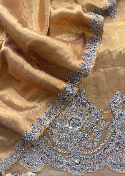 Noor Mahal Copper Gold Kalasheel Luxe Handwoven Tissue Dupatta Suit With Hand Work