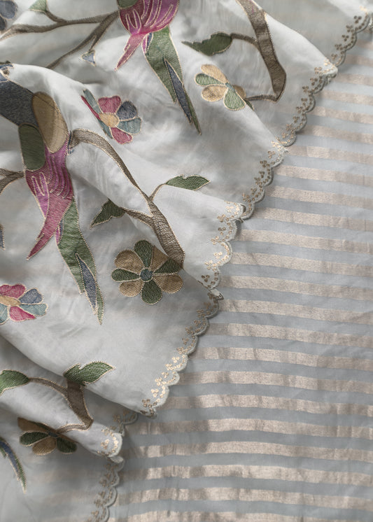 Powder Blue Kalasheel Luxe Totapuri Tissue Silk Suit With Pitta Hand Work