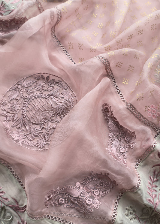 Pink Pure Organza Pakistani Suit With Dupatta