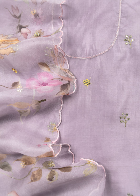 Purple Hand Embroidered Organza Silk Suit With Gotta Patti Dupatta