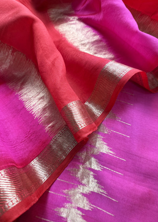 Kalasheel Luxe Deep Pink Pure Chiniya Silk With Gold Ikkat Weave