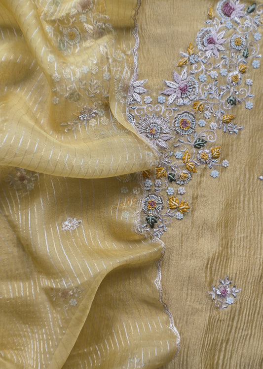 Kalasheel Luxe Honey Yellow Pure Crushed Tissue Kurta And Organza Dupatta With Zardosi And Dabka Handwork