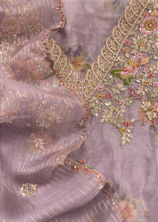 Lavender Wedding Bells Pure Tissue Silk Unstitched Suit Fabric With Dabka And Zardosi Handwork
