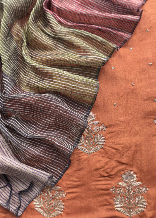 Sahiba 2025 Burnt Orange Handloom Desi Tussar Kurta With Zardosi Work And Ghicha Tussar dupatta