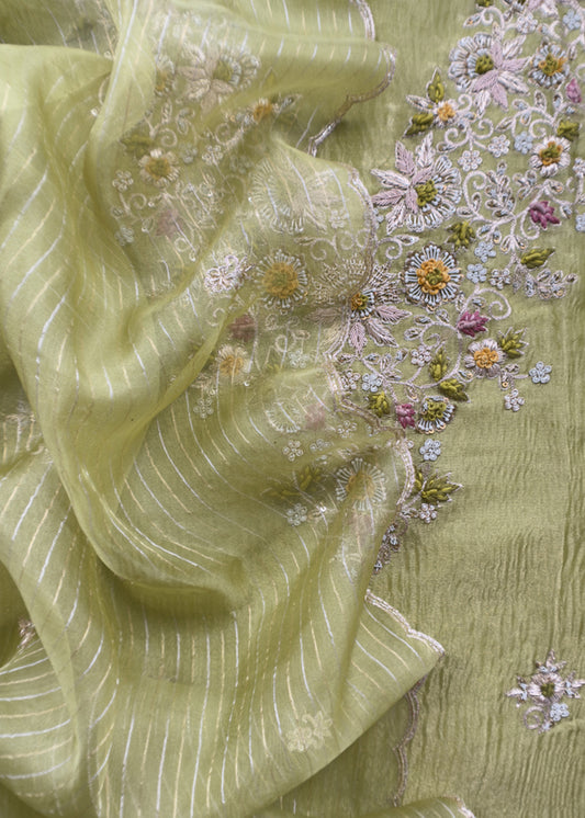 Kalasheel Luxe Green Pure Crushed Tissue Kurta And Organza Dupatta With Zardosi And Dabka Handwork