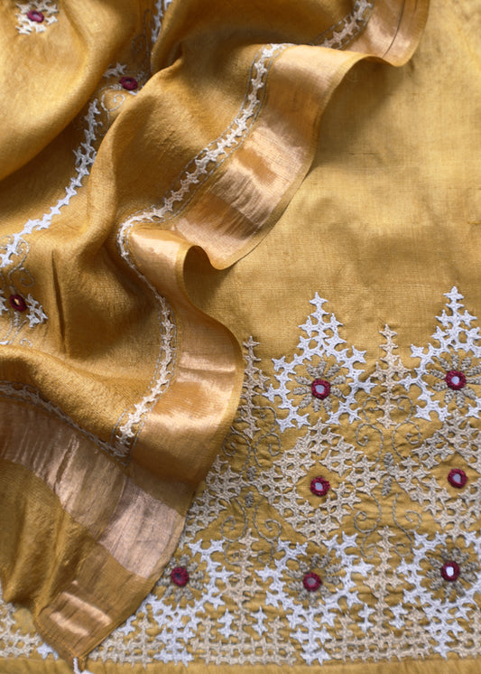 Kalasheel Luxe Yellow Handloom Tussar Suit With Kutch Embroidery