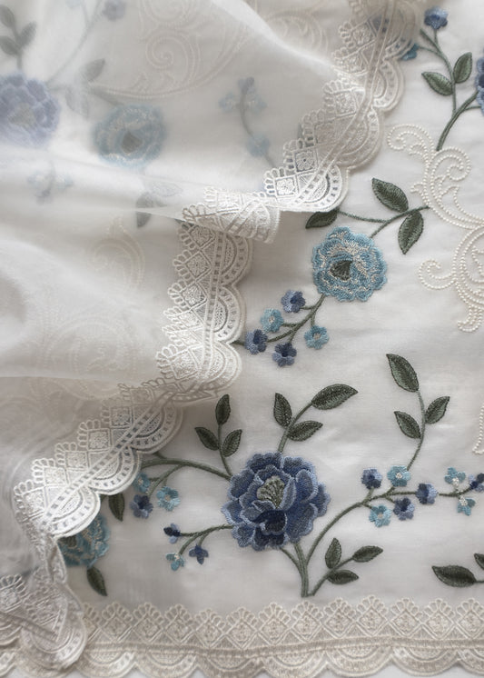 Luxe English Blue Handloom Silk Suit With Kora Silk Dupatta Adorned With Gold Pitta Work And Resham Embroidery