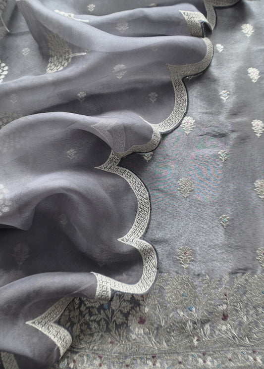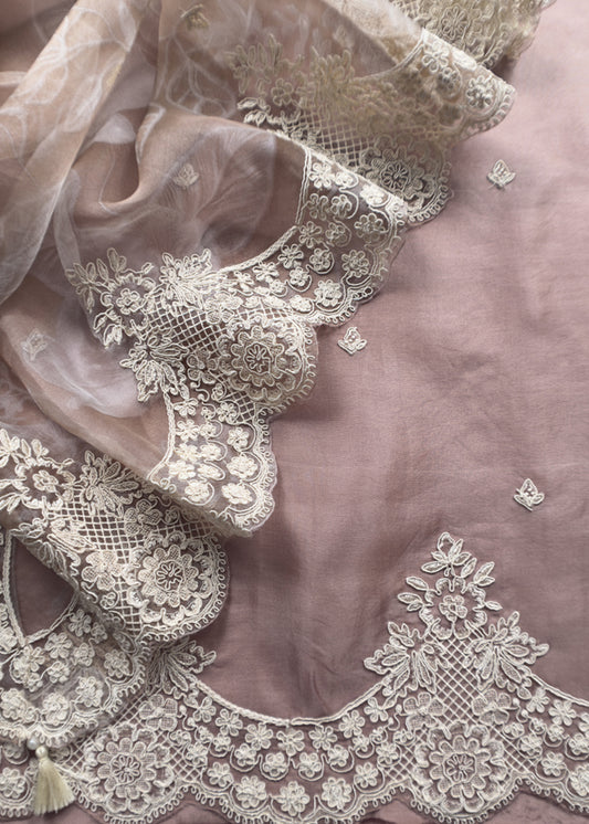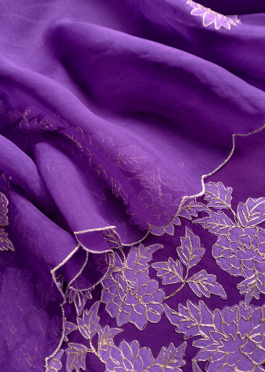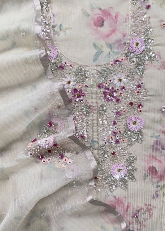 The Violet Affair Sikhagarh Handloom Organza Silk Suit With Floral Dupatta And Zari Embroidery