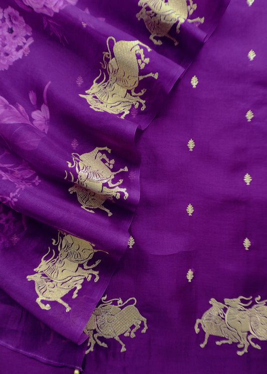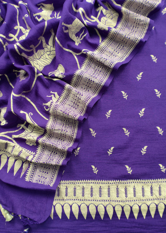 Kalasheel Luxe Purple Handloom Munga Silk Suit With Shikagarh Gold Weaving