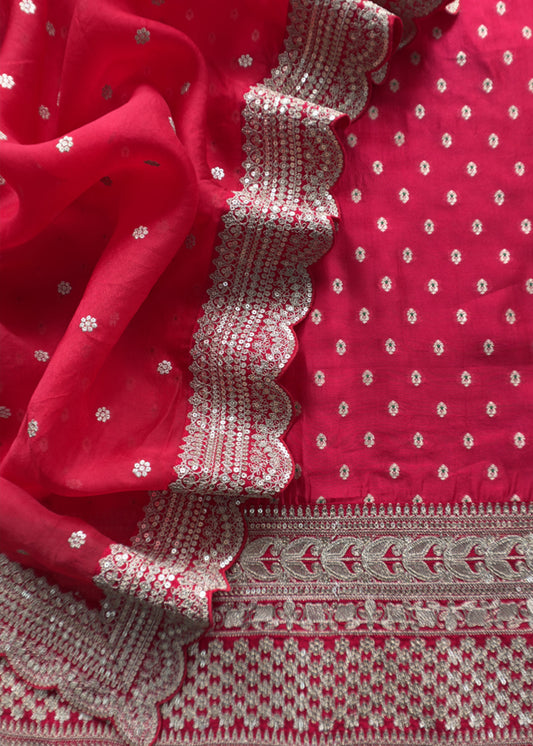 Shringar Red Handloom Luxurious Silk Suit With Meenakari Weaving And Dori embroidery