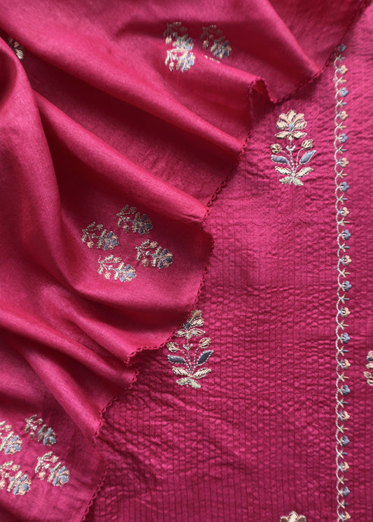 Sahiba 2025 Sangria Pink Pintuck Handloom Desi Tussar Suit With Zardosi And Resham Embroidery
