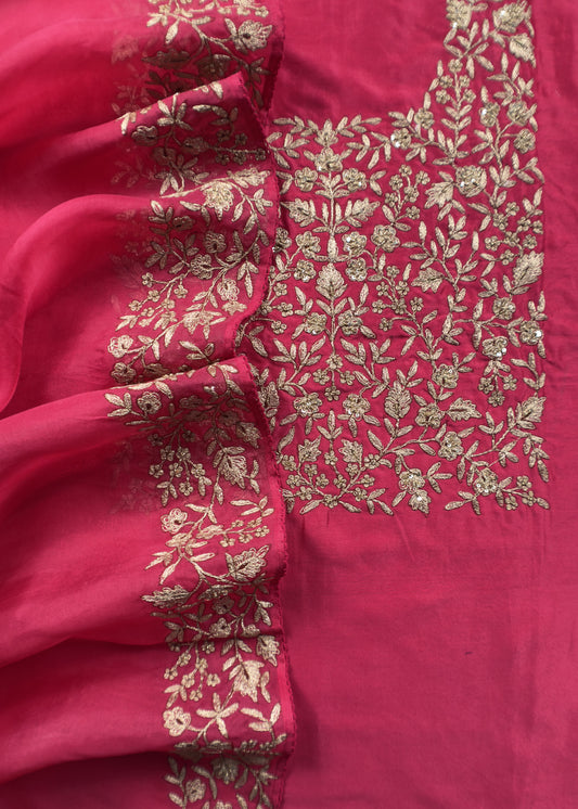 Pink Pure Tussar Unstitched Suit With Aari Embroidery