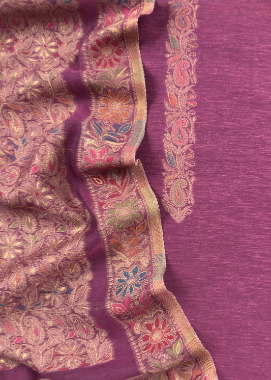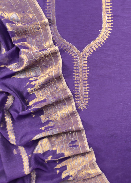 Purple Premium Kani Silk Suit With Kani Zari Weaving
