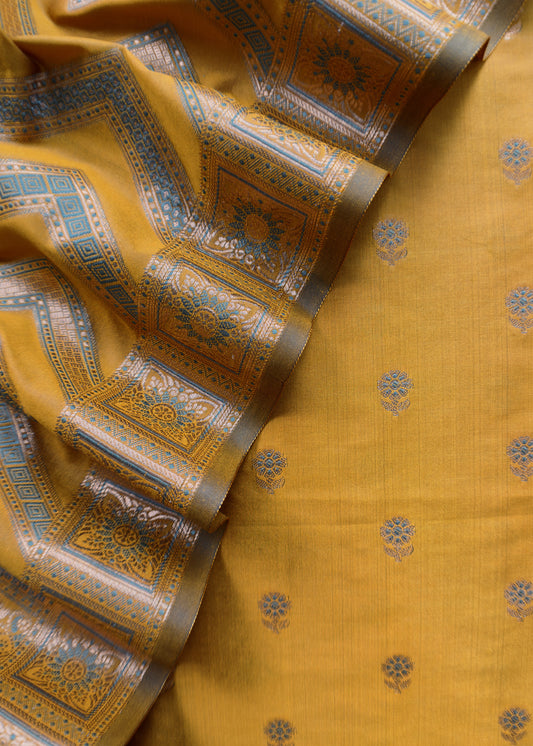 Golden Yellow Chidiya Handloom Katan Silk Suit Fabric