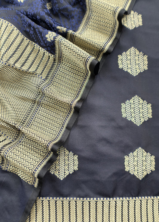 Midnight Blue Dhup chaav Pure Katan Silk Suit fabric with Meenakari zari weaving