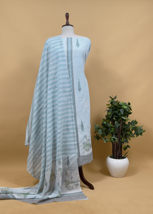 Sky Blue Pure Kota Suit Fabric with Cross Stitch Embroidery