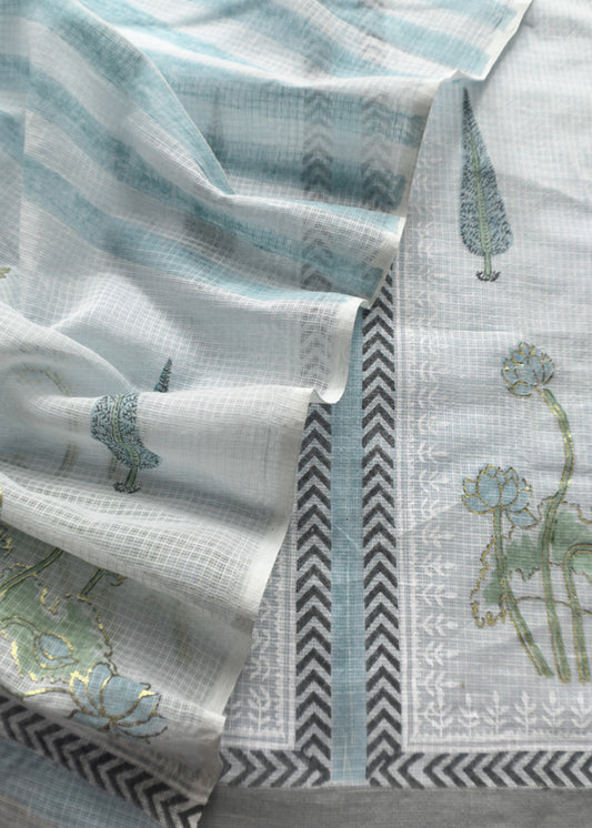 Light Green Kota Doria Dupatta Suit With Pitta Work