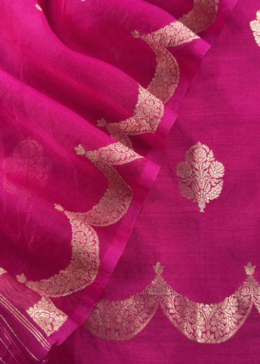 Pink Handloom Silk Kurta And Ombre Kora Silk Dupatta With Meenakari Weaving