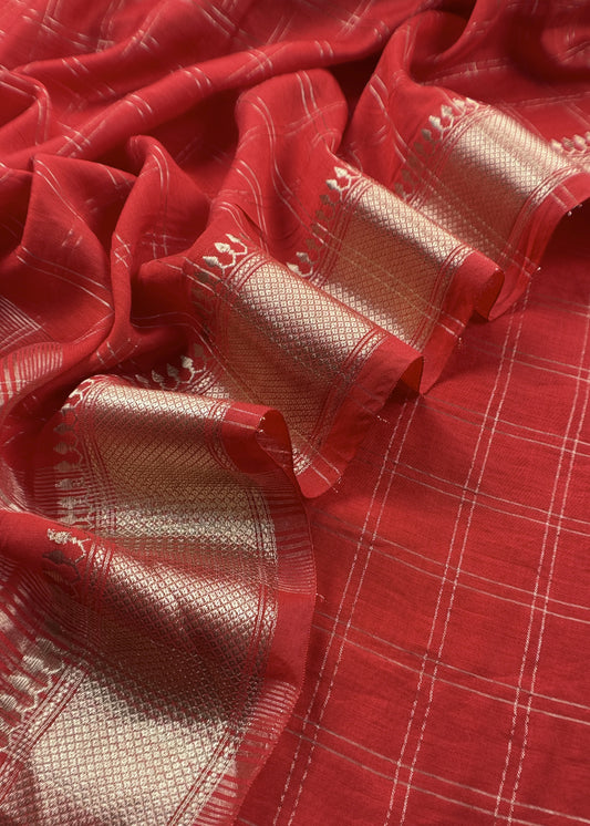 White And Red Handloom Silk Suit With Kani Zari Weaving