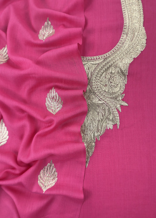 Pink Woolen Unstitched Suit With Aari Zari Embroidery
