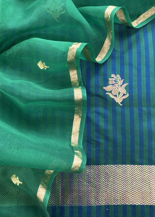 Kavya Green Blues Striped Katan Silk Kurta And Kora Silk Dupatta With Kadwa Weaving
