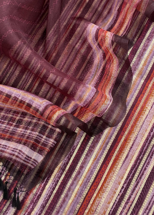 Kavya Violet greys striped Katan silk kurta and Kora silk dupatta with kadwa weaving