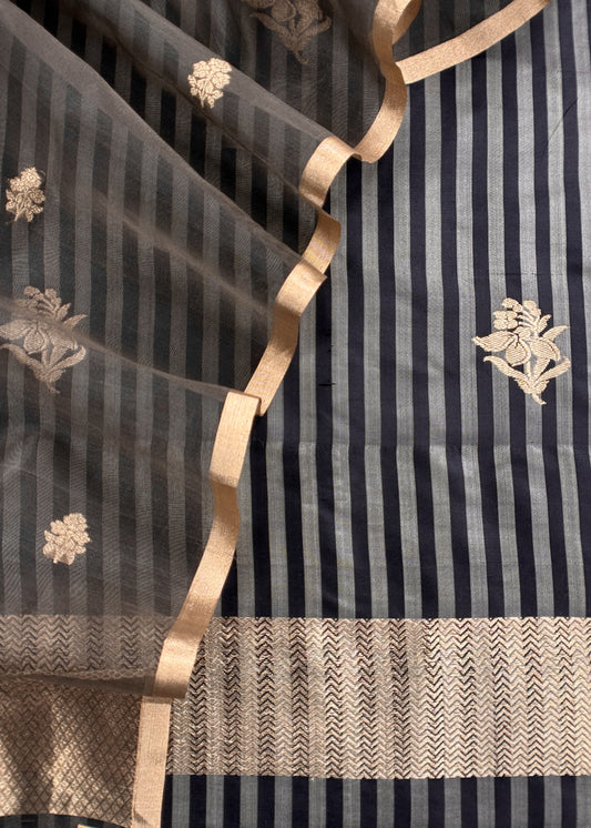 Kavya Black Greys Striped Katan Silk Kurta And Kora Silk Dupatta With Kadwa Weaving