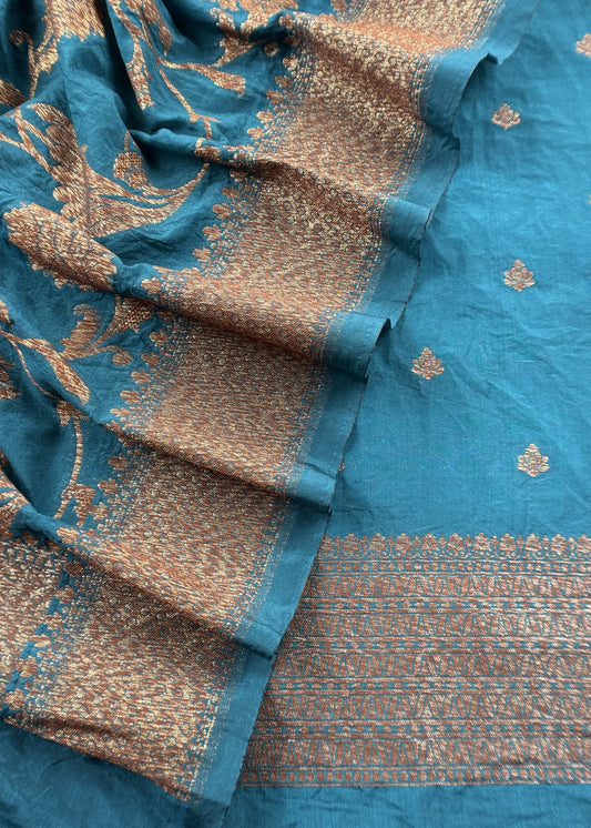 Steel Blue Georgette Silk Suit Fabric With Zari Weaving
