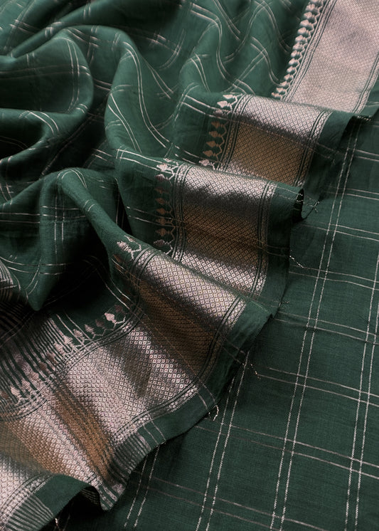 Bottle Green Banarasi Chanderi Suit With Dupatta