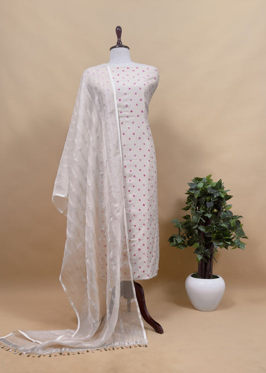 Pink Pure Maheshwari Silk Unstitched Suit Fabric With Shikagarh Print