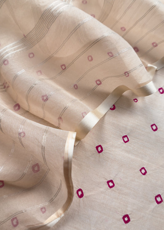 Beige Pure Silk Bandhani Kurta and Kora Silk Dupatta