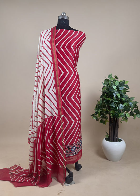 Red Leheriya Maheshwari Silk Unstitched Suit With Patola Dupatta