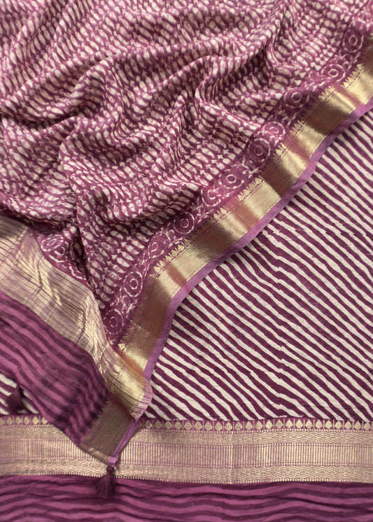 Pink Leheriya Maheshwari Silk Unstitched Suit With Patola Dupatta