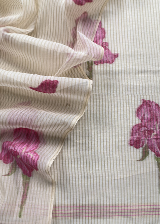 Pastel Green Handloom Linen Suit With Floral Digital Print Dupatta