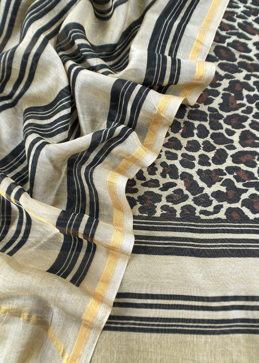 Beige and Black Pure Maheshwari Silk Suit With Dupatta