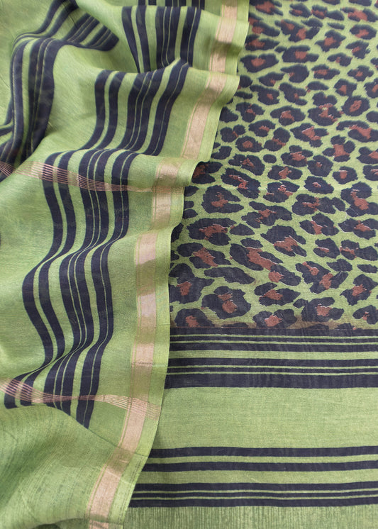 Green and Black Pure Maheshwari Silk Suit With Dupatta