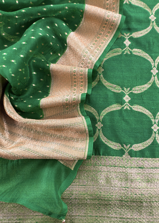 Emerald Green Brocade Silk Kurta and Organza Silk Dupatta With Handwork