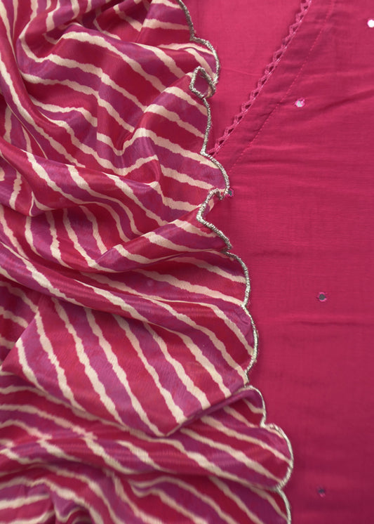 Pink Mul Chanderi Unstitched Suit With Lehariya Dupatta