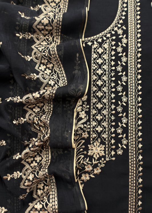 Black Pure Mulmul Lakhnavi Chikan Embroided Suit Fabric