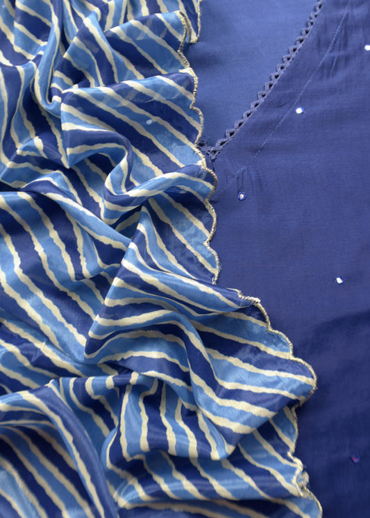 Blue Mul Chanderi Unstitched Suit With Lehariya Dupatta