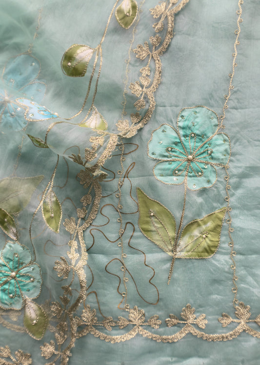 Fern Green Pure Organza Silk kurta And Dupatta With Resham Embroidery And Appliqué Aari Work