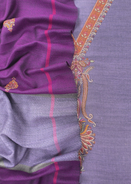 Grey Color Block Winters Handloom Pashmina Suit Fabric With Kashmiri Aari Embroidery