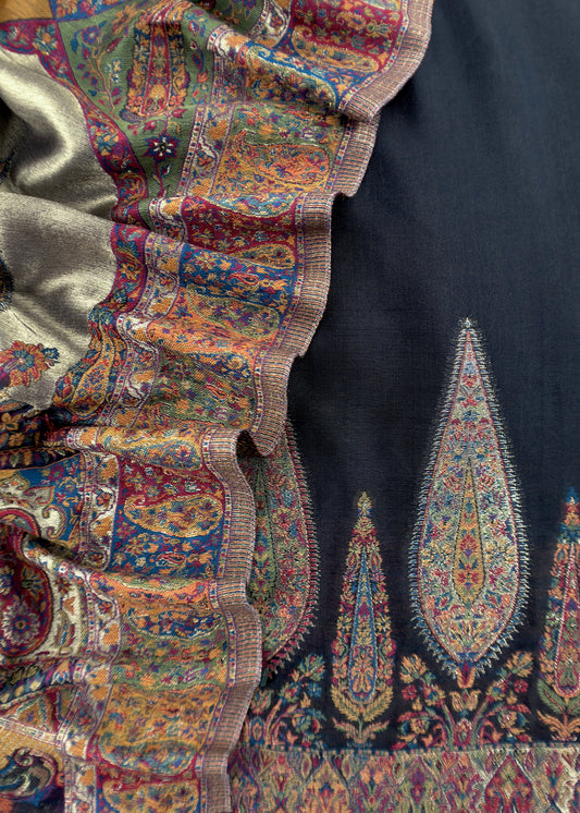 Black Pashmina Unstitched Suit With Kani Weaving