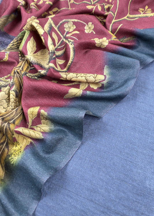 Wine Pure Pashmina Suit fabric with Kalamkari Brush print