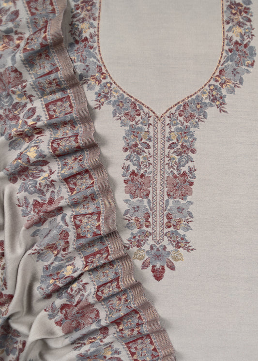Gray Pashmina Unstitched Suit With Kani Weaving
