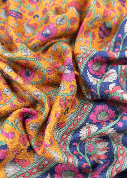 Yellow Pure Pashmina Unstitched Suits With Kalamkari Dupatta