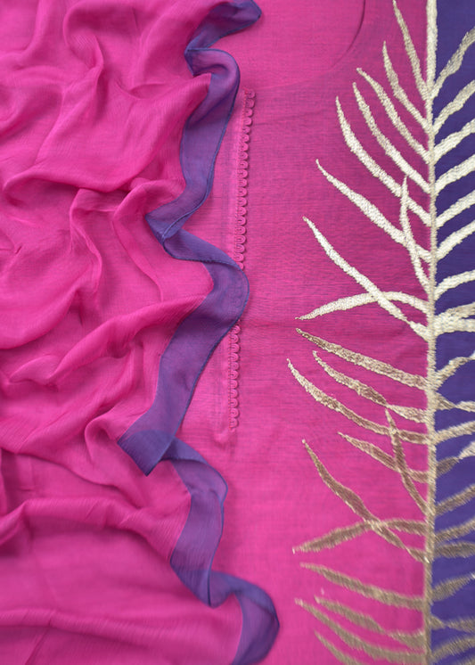 Pink And Violet Chanderi Kurta With Ombre Chiffon Dupatta With Dori Embroidery