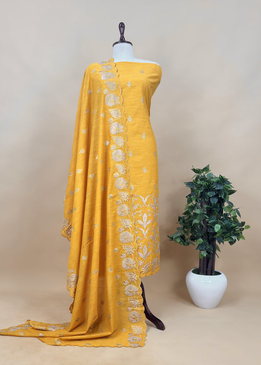 Pink Raw silk Suit Fabric With Gold Tissue Applique Work
