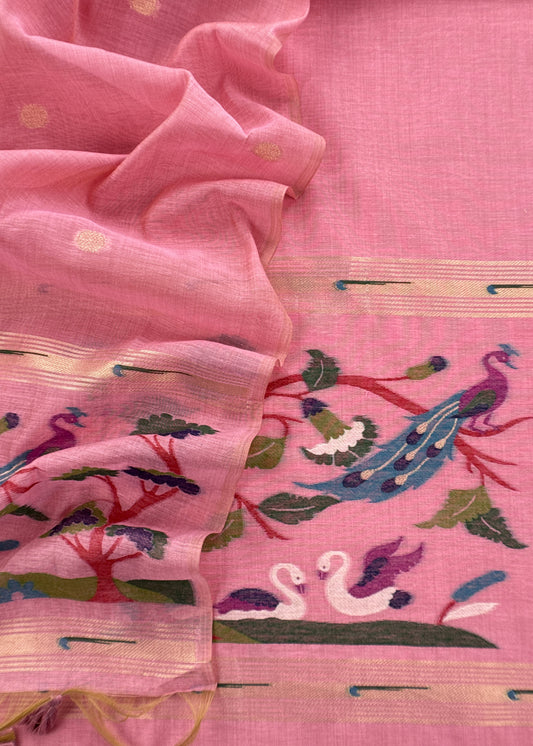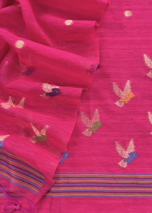 Pink Chidiya Jamdani Weaved Unstitched Suit In Chanderi